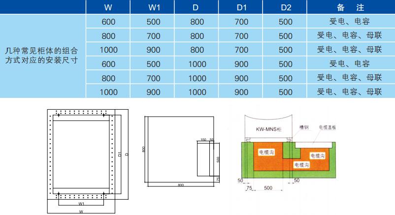 1、进线柜、母联和电容柜的安装尺寸