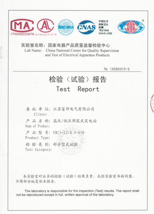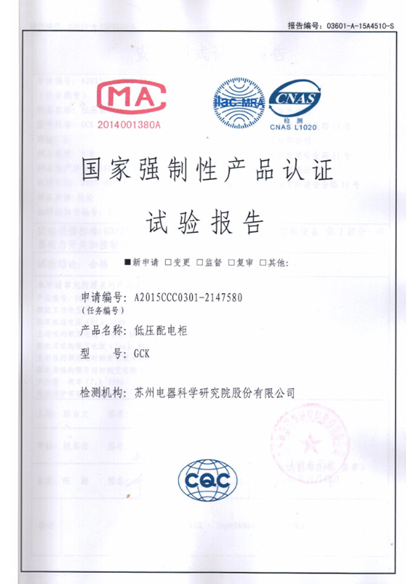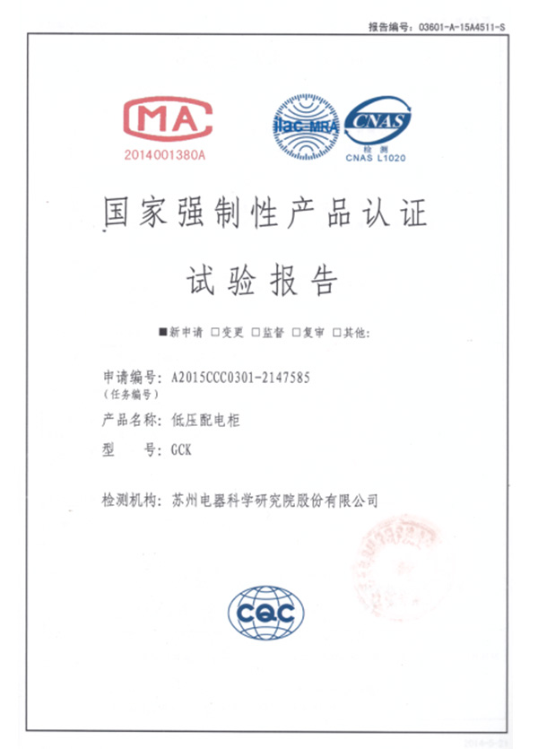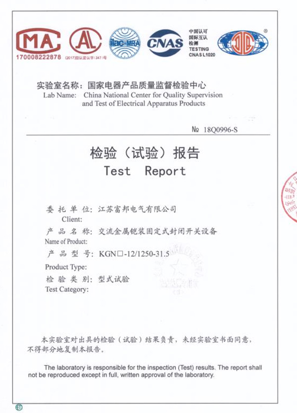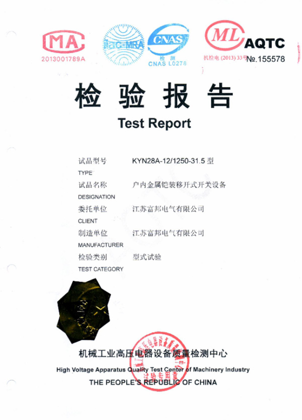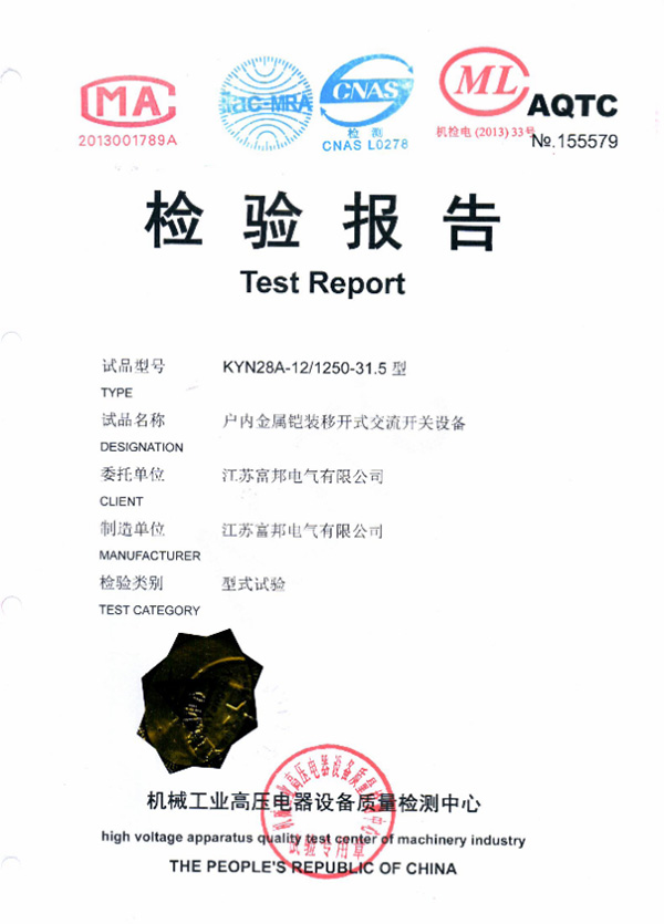 交流金属铠装固定式开关设备检验报告